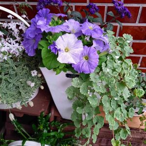 ❀寄せ植え❀ 香りの良いヘリオトロープ(香水の花)と ペチュニア☂️グレコマ🌿の 紫色系の寄せ植えです💜