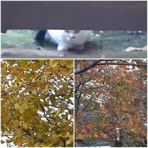 今日の朝散歩 もう夕方だけどね 上の🐱は前投稿した 塀の上で待つ🐱 今は塀の下から覗いてます みんなの仲間入りできず 追い払われ、隠れて ご飯待ってます。 可哀想😰😰 🐱の世界も厳しい⤵️ 下右は桜の紅葉 左は銀杏、公園もますます 色ずいてきました😄