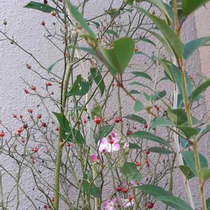 近所の家の花、 赤い実も可愛かった、