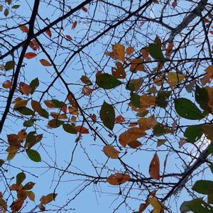 朝散歩 ちょっと疲れてベンチで一休み 上見上げたら桜の紅葉 これも終わりね、 でも良く見て👀😃 しっかりと花芽が💕💕