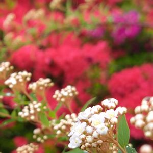 今日のお花「コデマリ」🌿🤍 お出かけ先でシャクナゲとの素敵なコラボを見つけました🤗💕 (昨年4月下旬の pic です) 🏷花の金曜日 に参加させていただきます🙇