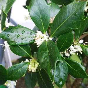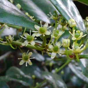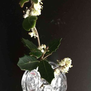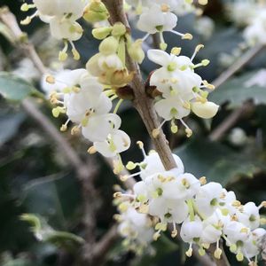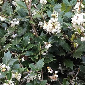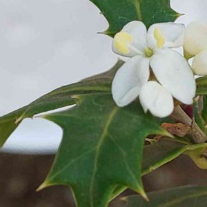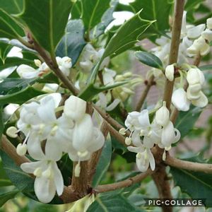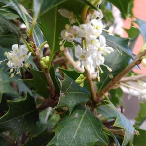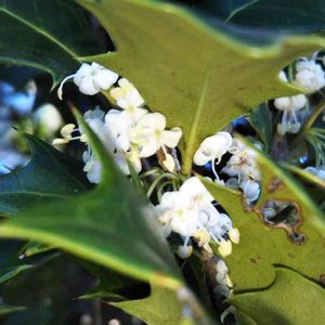 柊(ひいらぎ)🌿 白い花を付けています。👀 トゲトゲが邪気をはらってくれるのですね。
