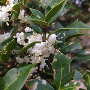 ヒイラギの花🌼 通勤途中にパチリ 虫食いの葉っぱが残念🍃