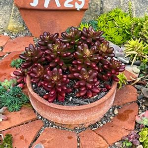 多肉畑!本日の主役は… 乙女心です💕 頬を赤く染めた姿はなんとも可愛らしい乙女ですね🥰 寒さでジュレかけてる下葉の黄色も彩りを添えてくれてます💛 お仏壇を置く為の押し入れリフォームは夫の丁寧過ぎる仕事でなかなか仕上がりましぇ〜ん😂 お仏壇を入れてしまえば中の壁も床も見えないのにね😅🤣 では、今週もよろしく〜💕