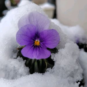 おはようございます😊 雪に埋もれたビオラ💜 かまくらに入ってるみたい✨ 黄色いおじさんビオラ🥸 ワインレッドのビオラ🍷 ビオラ タイガーアイ🐅 今朝はみんな、雪の中です⛄️ 今日も1日元気に過ごせますように🍎