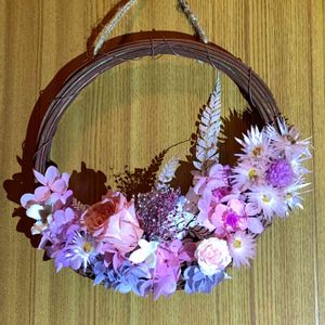 今朝作ったリース 11作品目🌸🍃 リースの形が変わっていたから💜 早く作りたかった❣️
