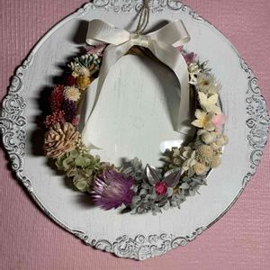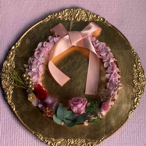 フラワーリース16作品目🌸🍃 リース専用のトレイにのせると.. 今までとは ちょっと違う雰囲気♥️
