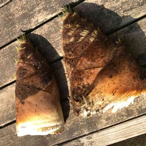 今年初タケノコ 昨日収穫しました〜💕 最初から大物で 左側が1,206g 右側が1,565gでした😆