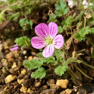すっかり枯れて無くなってしまったと思っていた姫フウロソウが、小さな花を咲かせました💓 可愛いです💕
