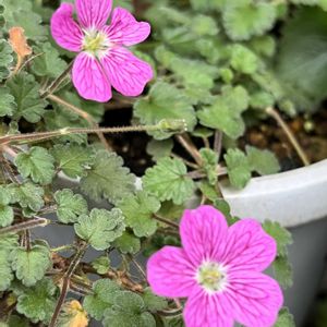 こんばんは🌙.*·̩͙ 最近咲き出した小花を紹介します🌸*・ ① ナツメグゼラニウム バリエガータ 3年か4年目くらいかな…🤔💭 斑入りの葉に薄ピンク色の小花が爽やかに咲いています。 ② ペラルゴニウム シドイデス このお花も 毎年咲いてくれる 強いお花♥️✨️ 耐寒温度が-7°Cで 子株で次々増えていきます。 ③姫フウロソウ 初雪カズラの中から一輪 🌸*・ 花数増えると いいな〜 ·͜·ᰔᩚ 以前 母にもらったのが10年以上咲いていたのですが 2年程前に消えてしまいました💦 ④ディアシアダーラ アップルブロッサム このお花も 5年くらいかな…🤔💭 毎年 春から晩秋まで咲いています。 ⑤アロンソア シェルピンク 寄せ植えに使おうと春にお迎えしながら 寄せるお花がなくてそのままになっているお花(^_^;) 一度満開になり✂️していたのが また最近 咲き始めました🌸*・ サーモンピンクの小花がとても可愛いですෆ˚* ④と⑤のお花 ちょっと似ています( ✿˘︶˘✿ )