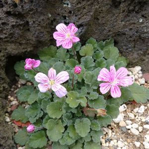おはようございます。 先週に続きゲラニウムの仲間から。 どちらも可愛い小花タイプです。 ①ゲラニウム・バレリーナ(Geranium cinereum 'Ballerina') 花弁に濃赤紫の筋が沢山入り、可愛らしいうえに派手めな雰囲気も持つゲラニウムです😊 土が良くないのか花数が少ないのが残念😢 ②桃花大輪ヒメフウロソウ(Erodium×variabile) 大輪といっても小さなお花ですが、沢山咲いてくれます♪