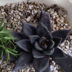 【エケベリア属 原種アフィニス】32 (和名 古紫・紫蘭妃) 我が家では、何故か カイガラムシの餌食になりやすい ブラック エケベリア🐛🐛🐛 「黒系エケベリアの交配親 夏の紫外線、高温に弱い」 【羽兼直行】さんの書籍から抜粋 ふるさと納税の返礼品 【唐津市 吉原園芸】さん https://www.rakuten.ne.jp/gold/yoshiharagarden/ ✏️自分用❄️越冬メモ✏️ 直射日光、風通しの良い場所を好む マイナス1~2℃まで耐え、 霜に当てても可 _φ(・_・ 【サボテンランド Cacto-Loco】さん のサイトから抜粋 http://cactoloco.jp/dic/A329.html