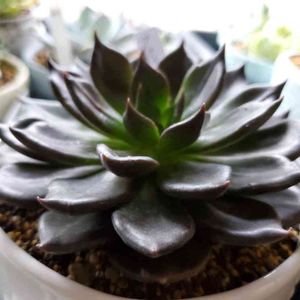 アフィニス 夕べは風🍃凄かったですΣ(ŎдŎ|||)ノノ いつもは多肉ちゃんたち避難させても大したことなくて今回はどうしょうか~って思ったけど避難させて良かった~ 無事回避( *ฅ́˘ฅ̀*) 皆さんの所は大丈夫ですか? どうか被害がありませんように(•ᵕᴗᵕ•)⁾⁾ぺこ 先週、はじめて黒い子お迎えしました。植え替えて水あげたら益々黒光りしてる~