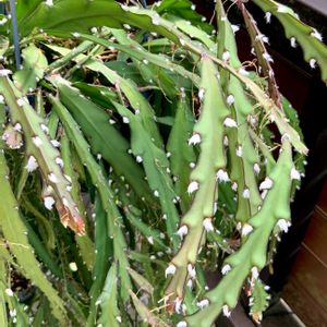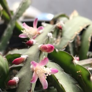レピスミウム クルシフォルメに小さな花が咲いていました。 蕾も沢山見えていて楽しみです😊