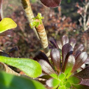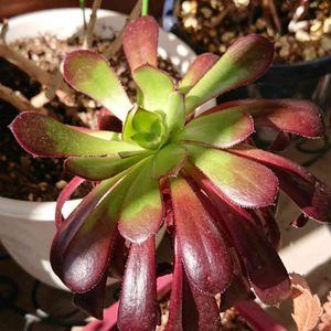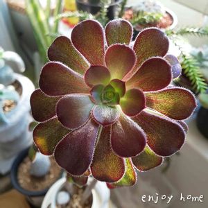 アエオニウム 黒法師 去年は屋外防寒なしで問題なかった黒法師 今年は1月の寒波で葉が全て萎れ茎も垂れ下がり、もうダメかと思ったけど復活してきました😊 やっぱり黒法師は強い 夏に葉が黒から緑になってから緑のまんま 日照が足りないとこうなると物の本で見たけど、年中ガンガン日に当ててるんですけどね?