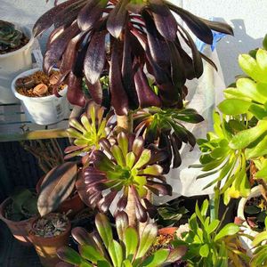 アエオニウムの黒法師とカシミアバイオレット 暖かくなってきたので水やりしたら、イキイキしてきたね😁