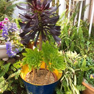 こんにちは😃浦和美園店 遠藤です☘ アイウエオ? じゃなくてアエオニウム〰︎笑笑 いつも口が回りません(*≧∀≦*) 黒法師さん、綺麗に真っ黒です🎶 並べると渋いですねぇ💕 よく見ると綺麗な形の葉っぱに、縁は細かいギザギザです 光沢があってファンが多いのも頷けますね💕 夏以外は沢山太陽に☀️当てると、葉が美しく保てます