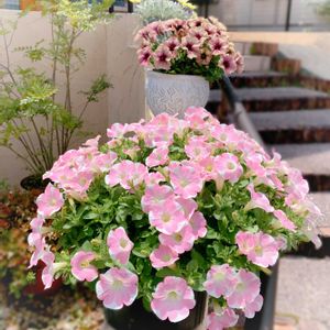 今日は暑さとメンタルやられて🥵⤵️⤵️⤵️⤵️ 最近ビビ🐶の心配が絶えず、昨日病院に連れて行ったら色んな宣告受けて😢 関節は元から悪かったけど、悪化している😱悩みが尽きない🐶🐶 頑張ろうね🤗💞 お花も暑さで干からびてしまってる子が多い中💦💦 1️⃣⭐️ペチュニア真輝 爽やかに咲いてくれてて、寄せ植えてある、 ⭐️八重咲きシレネ スワンレイク🤍 真ん中に1つ見えますか(๑˃̵ᴗ˂̵) 白い花 茎を伸ばしてその先に咲く子がひっそり咲いてました🤭 2️⃣⭐️ガザニアビーストシルバーフォックス🦊🌼 小ちゃくなっちゃったけど咲いてくれてる💓 3️⃣⭐️2年目観賞用トウガラシ ウチュウクリームレッドの斑入り葉は素敵💓でもトウガラシが居ない😅 毎日暑いですが身体には気をつけて下さいね🤗💞✨✨ 🏷️2のつく日は斑入りの日 🏷️斑入り見つけ隊♪