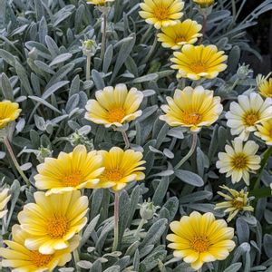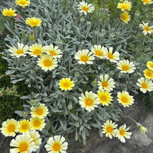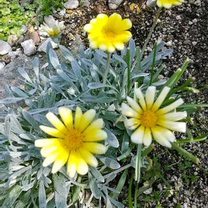 こんばんは☽⋰ (*´˘`*) 𓍯ガザニアビースト シルバーフォックス🌼 秋晴れの下☀️´- 昨年、お迎えした子で 8月の中旬〜下旬頃に切り戻し✂後の 咲きたてホヤホヤのお花です🌼*ˊᵕˋ* 1pic目の花びらがまだ短い子が 赤ちゃんのようで可愛いです🌼ᵕ̈ ₍ ᐢ.ˬ.ᐢ₎ᴷª꒳ªⁱⁱೀ 咲きたてだから 淡いクリームレモンいろ𓈒 𓂂 𓈒𓏸◌ ⊹ ࣪˖ ┈ ┈ ˖ ࣪⊹ ┈ ┈ ⊹ ࣪˖ ┈ ┈ ˖ ࣪⊹ −5℃にも耐えれる 耐寒性の子だけれど 昨年の大寒波 冬の厳しいを寒さをのり越え 越冬˖⋆ 赤ちゃんの笑顔のような 可愛いお花を見せてくれると 嬉しい ˖ ࣪⊹ 感動したナ⊹.· ˘ ˘̥ こう感じると さらに愛おしくなりました˘ ˘̥ ⊹.⋆ 花数は少ないときもありますが 何度も咲いてくれています⊹.· 日中、お日様が当たると花が開き 夕方には閉じます𓍯 ⊹ ࣪˖ ┈ ┈ ˖ ࣪⊹ ┈ ┈ ⊹ ࣪˖ ┈ ┈ ˖ ࣪⊹ 分類:キク科ガザニア属 学名:Gazania hybrid 開花期:春〜秋 ガザニアは🌼 南アフリカが原産で 暑さや乾燥に強いお花です⟡.· [別名]クンショウギク(勲章菊) とも呼ばれ 勲章のような形のお花が 春から秋まで鮮やかに咲きます⟡.· ⊹ ࣪˖ ┈ ┈ ˖ ࣪⊹ ┈ ┈ ⊹ ࣪˖ ┈ ┈ ˖ ࣪⊹ 花言葉🌼.* 「希望の光」 「栄光」 「あなたを誇りに思う」 「身近な愛」 「潔白」 ⊹ ࣪˖ ┈ ┈ ˖ ࣪⊹ ┈ ┈ ⊹ ࣪˖ ┈ ┈ ˖ ࣪⊹ 優しい、いろ𓈒 𓂂 𓈒𓏸◌ ガザニアビーストさんへ💌 「また咲いてくれてありがとう✨ 優しい色で可愛いですねᵕ̈」( ˘͈ ᵕ ˘͈♡) 花がついていないときでも シルバーリーフの葉が とても美しく綺麗です✨ 葉は少し動物さんの毛並みのようで それがまた可愛いですねೀ⸝⸝˃ ᵕ ˂⸝⸝キュン 素敵な週末を┈✧⋆.˚⊹⁺ ˶˙ᵕ˙ )ノ゙ ⋆˚ʚɞ 少し早いですが おやすみなさい┄𖧷⁺.˖* (*´˘`*)✧*。✰⋆。:゚・*☽:゚・⋆ ✼••┈┈┈┈••✼••┈┈┈┈••✼ 先月は北海道初の線状降水帯となり 線状降水帯地方ではなかったのですが 娘地方も停電💡✘し、電話でやり取り 娘も電話口で、暴風雨の影響で 「ガッシャーン!ガッシャーン!と音が してる!」と言って 少しバタバタとしました( ˊᵕˋ ;)💦 停電は冷凍冷蔵庫のことも 心配になりますね💦 皆様もどうぞお気をつけください𓂃𓈒🍀𓏸 (*ᴗˬᴗ)⁾⁾
