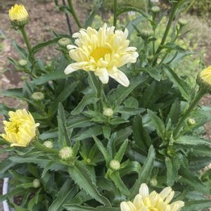 おはようございますございます☀️ やっとお日様が顔出しました🔅🔆🔅🔆🔅🔆 待どしかったわ*͈ᴗ͈ˬᴗ͈ෆ レウカンセマム ミルキーウェイ バナナクリーム 咲き始めました🌼🌼🌼🌼🌼🌼 クリーム色のお花は癒されます💛💛💛💛💛💛 5枚目は ガザニアビースト 何年も咲いていますm(_ _)m