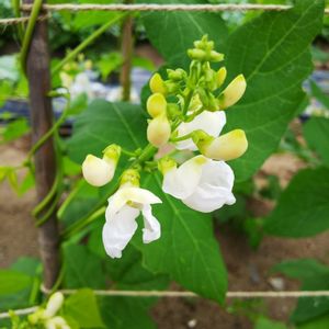 市民農園で育てている白花豆の花が咲きました❗️ 赤花豆も育てていてどちらも咲き始めています。しかしなかなかぽとぽと落ちます。。。 秋に沢山収穫できますように❗️