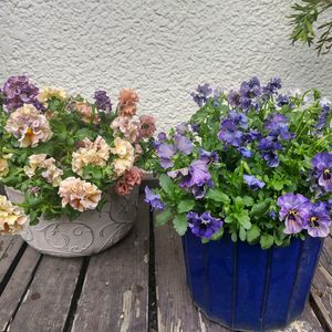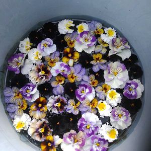 この春に私の庭で育てたパンビオ(一部)による 花手水作りました いっぱい咲いてくれてありがとう🥰
