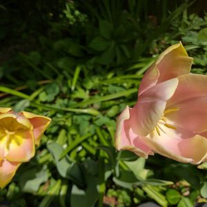 最近の庭散歩 チューリップ 薄ピンクに黄色の縁で柔らかい雰囲気が好きです ビオラ ヌーベルバーグ さすが有一無二のcolorがスゴい😍まさに庭に咲く芸術作品だと思います。 4枚目📸→GETした当時の本来の色に復活して安心。黄色のさじ加減素敵!