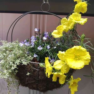 爽やかな初夏の寄せ植え作りました カリロファスサニーチャーブ💛 涼しげカラーのロベリアも可愛いので見てほしいです💙 これからもっとモリモリになるのかな~ワクワク😃💕猛暑で枯れたら泣くかも、、今日も夏の陽気で暑いです☀️昼ごはんは韓国冷麺たべます!