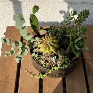 多肉寄せ その1 初めて多肉の寄せ植えにチャレンジしました。 とりあえず家にあった多肉ちゃん達だけで寄せ植えしてみたけど、時期や特性などよく分からなかったので一緒にしていいのか分からないけど、なんかフワッとした感じで作ってみました。 ちょうどいいピンセットが無くて割り箸でやったので細かく詰めるの難しくてコレが限界でした😅 でも、意外と気に入っています❤️