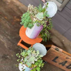 春萌、姫秋麗、乙女心、ピンキー(*˘︶˘*).。.:*♡ 缶みかんの缶に…仕立て直し✨乙女心の紅葉が楽しみです♡