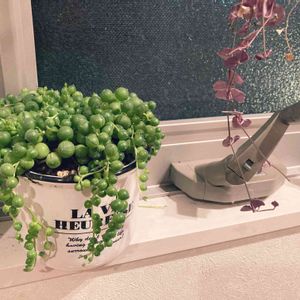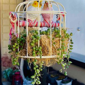 おはようございます☀ 今年の5月にグリーンネックレスのカット苗をダイソーの鳥籠に植え付けました。 根付いたのかモリモリ増えてきました。 やったぁ✨✨✨