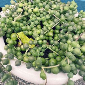 こんにちは 暑くなりましたね 🏷つぶつぶの日 参加させていただきます 根詰まりしてた ルビネちゃんとグリーンネックレス まだ暑かったけど先日植え替えしちゃった😅これでお水が吸ってもらえるね ふさふさになりますように☺️