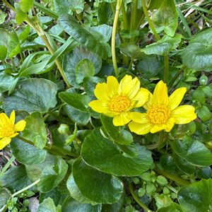遊歩道のあちこちにヒメリュウキンカが咲いていました。 花に艶があるのでキラキラと光っているようです😍 今まで気が付か無かったけど、葉っぱもカワイイ😍 でも繁殖力が旺盛で要注意らしい😅