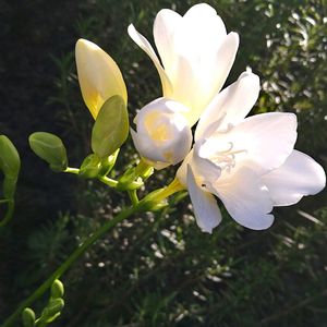 おはようございます😄 🏷 今日のお花フリージア😉 ① 去年4月の素敵なフリージアです😆 ② こぼれ種でのフリージアです🤍💮 咲くかな〜😁 ③ ヒメリュウキンカの可愛い蕾ちゃん😁 ④ チャーミングなヒメリュウキンカです😆