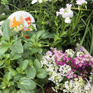 先日の、花苗で、 寄せ植え。 まだ花がないので、 もりもりに咲いて欲しい。 ネメシア 色が薄くなったけど💦 だいぶ経つのは、 やっと開花し始めるビオラ ダブルデッカーのビオラ達も。 徒長したのは、 カットすればいいのか、 持ち上げてるんですよね。
