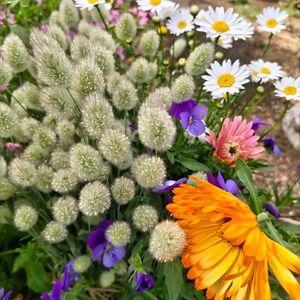 バーバスカム今年増やした株です。その側にはメランポジウムとアゲラタムを植えてみました