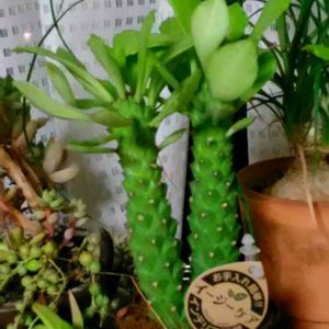おはようございます😃 涼しい朝 秋ですね〜❗️🤗 モナデニウム属 ⭐️リチェイ(196) Monadenium ritchiei❗️ 頭のあたりからも 枝分かれ、だんだんに形が変わって来た❗️🥰 パキポディウム属 ⭐️ラメリー(258) Pachypodium lamerei❗️ ダイソー多肉ちゃんには 見えません❗️😅 葉っぱも沢山増えて元気そうです〜❗️🥰 ユーフォルビア属 (313)ちび花麒麟 Euphorbia decaryi var spirosticha❗️ 葉の縮れた花麒麟ちゃん❗️🥰 どんな花が咲くのか🌸楽しみです〜❗️🤗 クラッスラ属 (314)南十字星(みなみじゅうじせい) Crassule perforate f.variegata❗️ 星の王子さまの斑入り種、王子さまみたいに沢山増やしたいです〜❗️🥰