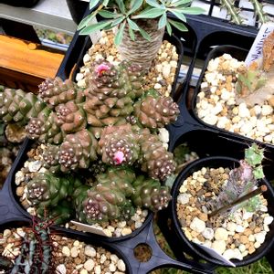 モナデニウム リチェイさんの子株たちです。 結構大きくなってたのでもぎもぎしました〜。 一番大きい子のてっぺんはもしかして花芽かな⁉️ 下の白い子は根本に埋まってたので救出! どの子もちょろっと根っこが出てたので切り口周りをルートンでおめかししてお引っ越しです。 大きくなれよ〜✨