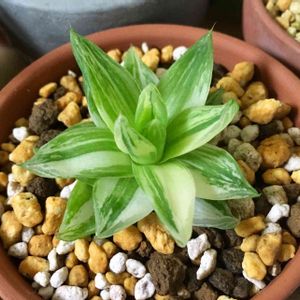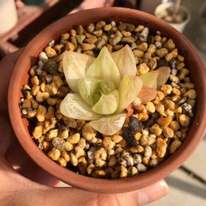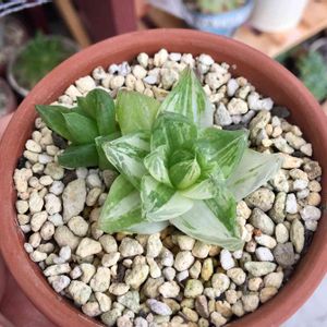 おはようございます! 今日の予報は雨のち曇です☔/☁ 我が家のハオルチアの『京の華錦』💖 錦、斑入りが大好きな為育ててますが、 ちゃんと育てれるかな?😆🌱 と思いつつ、眺めてます😍