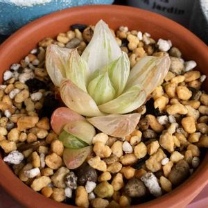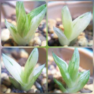 記念すべき100pic、京の華錦❤ この子は子株をたくさん着けるんだけど成長がとてもゆっくり、子株もなかなか大きくならないです🐰 大好きな斑入り品種なのでどんどん育ってほしいんですけどね~😁
