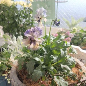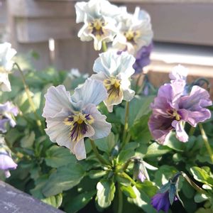 ☀️マークしかない天気予報なのに太陽は雲に隠れてます☁️ 趣味の洗濯も張り切ってしたのに😅 ❁⃘モンキージョージ ❁⃘レディ 寒さに強いビオラ。 雪のあとも次々咲いてくれてます😊 ジョージさんは12月お迎えの時よりも黄色が薄くなり、茶の滲みが大きくなって来ました。ますますモンキーっぽくなってる🐒 レディも淡いブルーに紫ピンクから少し色が抜け、一段と上品な色に変化🥰 これから気温が上がっていくとどんな風に変化していくか楽しみです🎶