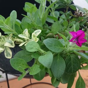 ナンチヤッテ温室に切り戻しをして避難しているサフィニア、小さなつぼみがかわいい。🤗🎵➰🎵 斑入りの新芽が出ていたのですが、暖かすぎたのか元近くで駄目になりました、これはそのあと芽吹いたものです。🤗🎵 春にどんな花が咲くのか想像できません、ワクワクが止まりません。🤗🎵➰🎵