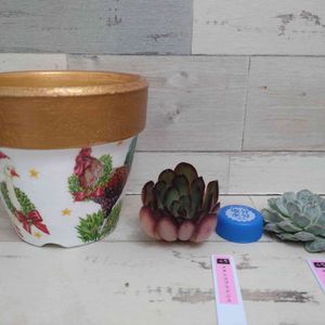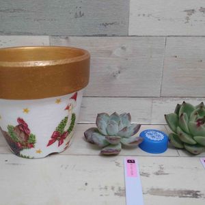 🙇売り切れました🙇 販売用です🎶⑤ デコパージュ クリスマスリメ鉢🎄 3.5号鉢 韓国苗 ピンククリスタルローズ ピュアラブに変更 第4種郵速達にて発送予定です。 防水加工はしていますが、雨ざらしにはしないで下さいね。
