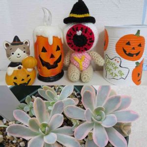 おはようございます😊 昨日は、600picのお祝いコメントを、たくさん頂き、有り難うございました🙇💕 ちょっと早いけど、大好きなハロウィン🎃 anちゃんに、おねだり~オヤジの帽子🎩 もちろん、オヤジもanちゃんが、編み編みしてくれましたよ。 anちゃん、有り難う😘 子持ち蓮華錦、大半がドリル出てるけど、これは大丈夫みたいね。