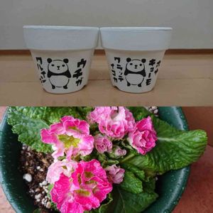 良いお天気なので、リメ鉢を作りましたぁ。 上は2号鉢 最近は、このシンプル鉢がお気に入り😊 下のカープリメ鉢は、2.5号鉢😁👍 ↘️は新入りのアップスです。 大きいよ~😆⤴️⤴️⤴️