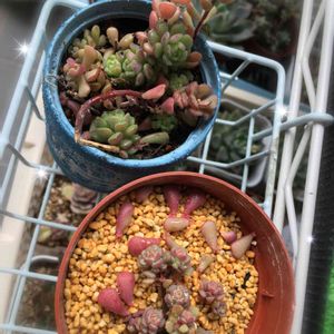セダム スプリングワンダー🔴 こぼれた葉から♬こんなに可愛くなってきました〜🌸💗 後ろのレーマニーとっても丈夫でいつもプリプリ💟良いわー⤴️⤴️