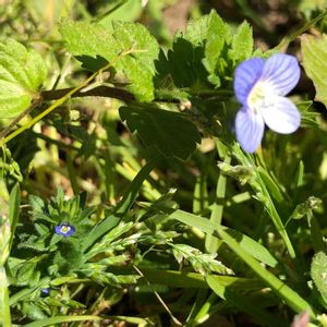 だいぶ小さくて目立たない花です。タチイヌノフグリでしょうか?