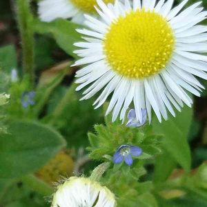 いい天気☀️ ヒメジョオンが 元気に咲いていました🎵 でも、タチイヌノフグリと同じくらいの低い背丈で、 思わずクスッとしてしまいました😊