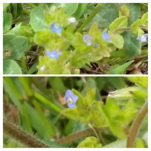 庭先でみつけたオオイヌノフグリとタチイヌノフグリと思われる花。見た目は似てますがとっても小さい花です。