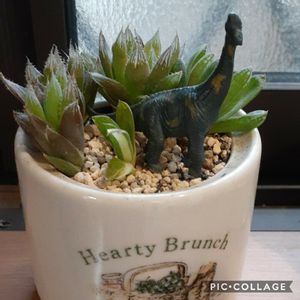 ハオルシア:ベヌスタhyb 株元には、トリオtheお子ちゃま👶 これもまた、キレイになっていくんだろうなぁ😊 お子ちゃまは、来月あたり独立させるかな🤔 白うさぎ、紫絵巻と、恐らく同じくらいのサイズになってるはず…… 同居させても面白いかな🤔
